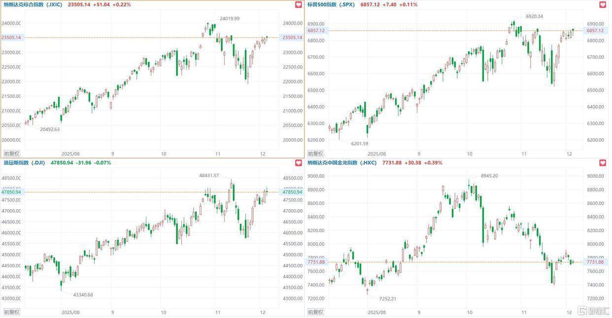 美国上周首次申领失业救济人数降至3年低位,降息预期稍降温;美股三大指数收盘涨跌不一,道指跌0.07%,纳指涨0.22%,标普500指数涨0.11%,热门科技股涨跌不一,Meta涨超3%,英伟达涨超2%,亚马逊、苹果跌超1%。计算机硬件、加密矿企涨幅居前,SanDisk涨超9%,Hut8涨近7%,戴尔科技涨超4%,惠普涨近3%。贵金属、旅游酒店、锂矿概念股跌幅居前宏融信,美国雅保跌超5%,希尔顿酒店、皇家加勒比邮轮跌超2%。